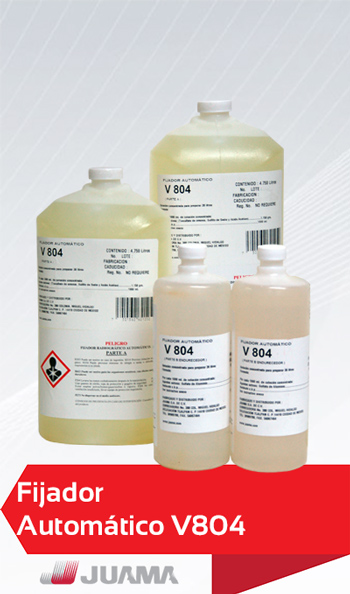 | Fijador Automático V804 para preparar 76 Litros. | Fijador concentrado para equipos automáticos para preparar 76 litros, en presentación de: Una Cubeta con 19 Litros y 4 envases de 1 litro cada uno de endurecedor.