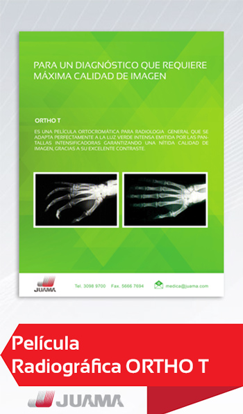 | Película Radiográfica ORTHO T | Película de sensibilidad espectral que se extiende en el área de la luz verde, adecuada para ciclos de procesado manual o automático, en las siguientes medidas: 5X7 Pulgadas. (12X30 cm. aprox.)