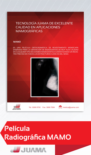 | Película Radiográfica MAMO | Película ortocromática de revestimiento monocapa diseñada para la obtención de radiografías en cualquier tipo de examen mamográfico. Para procesado manual y automático en presentación de caja con 100 hojas sin interfolio, en las siguientes medidas: 8X10 Pulgadas. (20X25 cm. aprox.)