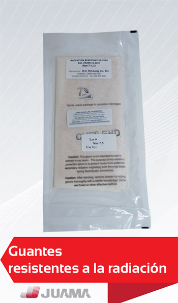 | Guantes resistentes a la radiación | Guantes emplomados marca MDM, flexibles de goma cubiertos de plomo de .018 mm de espesor únicamente de 0.012 pulgadas de grosor, extremadamente flexibles, protegen de la radiación directa o indirecta durante todas las fases de la exposición a la radiación, 10% a 30% protección en 60 kV. Y 125 kV.