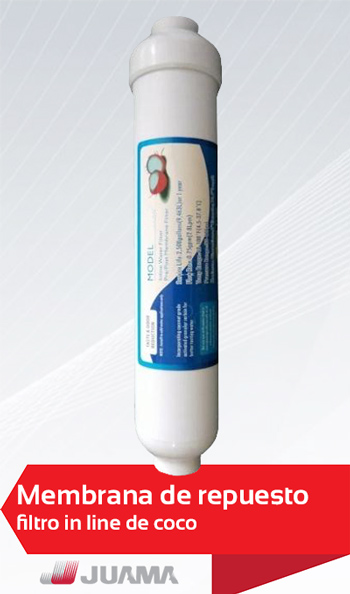 | Membrana de repuesto filtro in line de coco | Proceso germicida que logra erradicar la contaminación microbiológica con una tecnología simple (sin adición de químicos, ni cambios en la química general del agua), se hace pasar el efluente por un cámara donde se encuentran las lámparas que emiten rayos de luz ultravioleta. Cuando los microorganismos tienen contacto con la radiación UV son automáticamente destruidos.