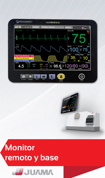 | Monitor remoto y base | Tableta inalámbrica no magnética que ha evolucionado el monitoreo remoto del paciente dentro de la sala de resonancia magnética. La base facilita la comunicación inalámbrica entre el monitor y la tableta, con impresora opcional. Modelo 3885.