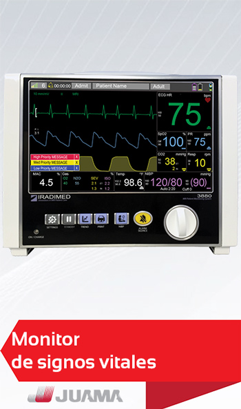| Monitor de signos vitales compatible con RM | Primer y único monitor completamente no magnético, utilizado para adquirir, procesar y desplegar los signos vitales del paciente durante el estudio de resonancia magnética con opciones de ECG, SPO₂, PANI, PAI, EtCO₂ Y TEMP. Modelo 3880.