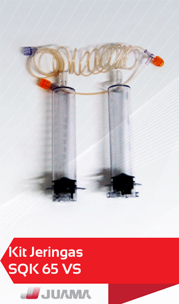 | Kit Jeringas SQK 65 VS | Juego de Jeringa de polipropileno tereftalato, con tubo de llenado en forma de "J" y tubo conector de baja presión, para inyección de material de contraste y soluciones, específico para Inyector Marca: Medrad, Modelo: Spectris MR. Estéril y desechable. Registro Sanitario No. 0171C98 SSA.