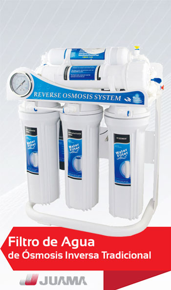 | Sistema de filtro de agua ósmosis inversa tradicional | El sistema de filtrado tradicional de ósmosis inversa de uso residencial bajo la tarja proveerá agua purificada baja en sales y sodio además, eliminará las partículas de polvo, olores y sabores desagradables, así como virus y bacterias a través de sus siete etapas de purificación.